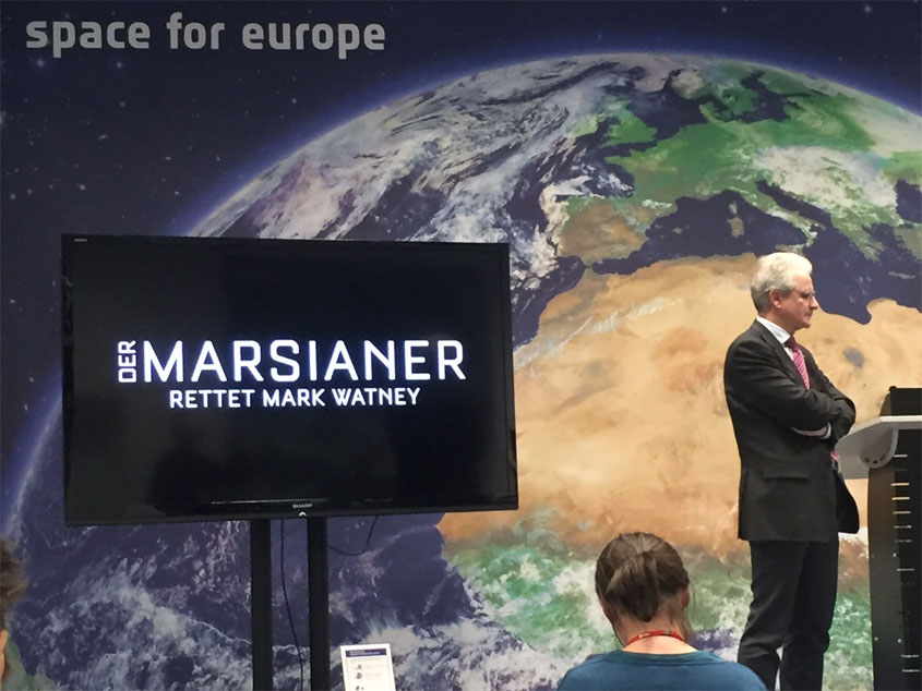 Eine Landung auf dem Mars von Astronauten sieht die ESA aktuell nicht als realisierbares Ziel. Die Technik sei da und vorhanden, doch der Wille fehlt. Es wird hier häufig vom Willen gesprochen. Damit sind natürlich der politische Wille und die Finanzierung der Missionen gemeint, deren Vorteil dem Steuerzahler schmackhaft gemacht werden muss. Darin seien die Amerikaner sehr gut, meint Ferri. Die große mediale Berichterstattung zur Landung von Curiosity, die Verfilmung des Bestsellers und der große Film des Films beweisen, dass eine Reise zum Mars die Menschen immer noch bewegt und faszinieren kann. Und das obwohl der Mars im Kino mit MISSION TO MARS und RED PLANET Anfang der Jahrtausendwende kränkelte und spätestens mit Disneys bombastischem Flop MARS NEEDS MOMS endgültig für Tod erklärt wurde. Währenddessen bleiben die Budgets für Weltraumbehörden jedoch auf einem historischen Tiefpunkt.
